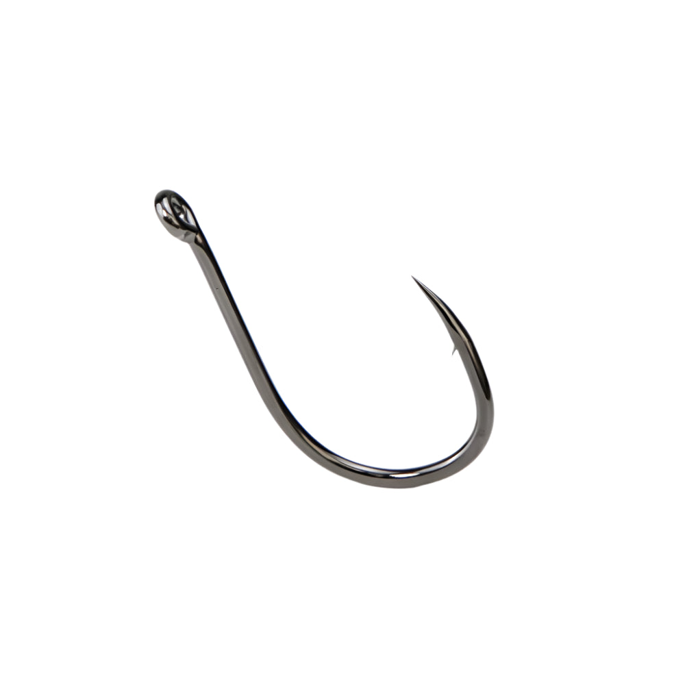 Chinu fishing hook with ring, made from HBH Alloy steel and featuring a Black Nickel electroplate. Suitable for ocean fishing techniques like beach, boat, and rock fishing. With barbed design, enhancing performance. Complies with customization demands including bulk and customized packaging options.