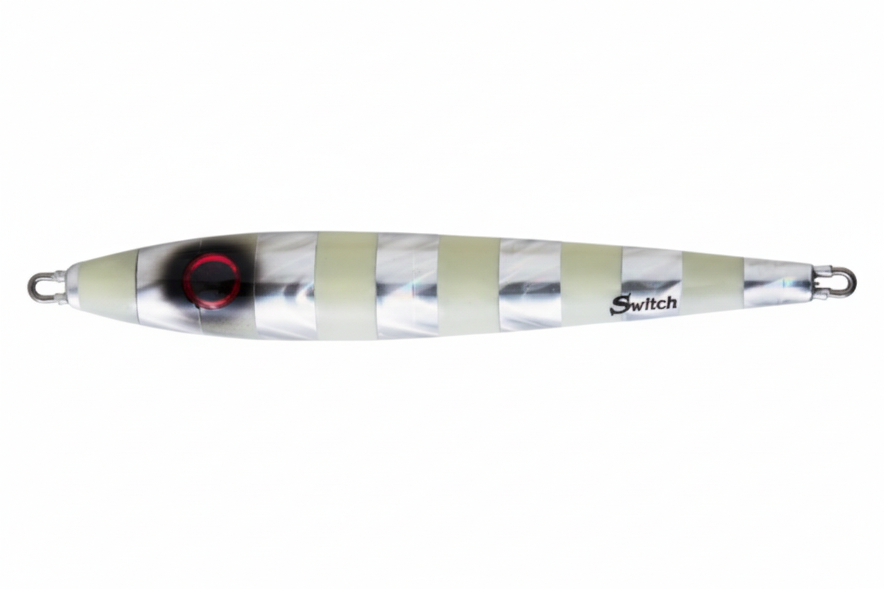 The Jack Eye Switch delivers versatile vertical jigging performance through its innovative design. Its semi-head-weighted, asymmetric construction generates distinctive wobble and vibration patterns that trigger aggressive strikes. Execute fast pitches for sharp darting movements or employ slow-pitch techniques to achieve horizontal positioning and side-to-side swing action that mimics wounded baitfish. This dual-action capability makes it exceptionally effective across multiple species including red snapper, grouper, amberjack, rockfish, yellowtail, tuna, king mackerel, wahoo, dolphin, and bonita—adapting seamlessly to varying fish activity levels and water conditions.