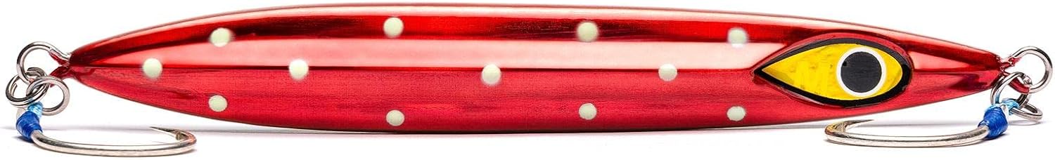 The new Rip Roller Slow Fall Jig is built with a slim, streamlined profile for quick descent on a tight line. Its centered weight gives it a stable, but rapid rolling action on a slack line. Two contrasting colors on each side create a blinking flash that triggers strikes. Perfect for deep fish or heavy current! Features a 2X single 10816NP-DT hook