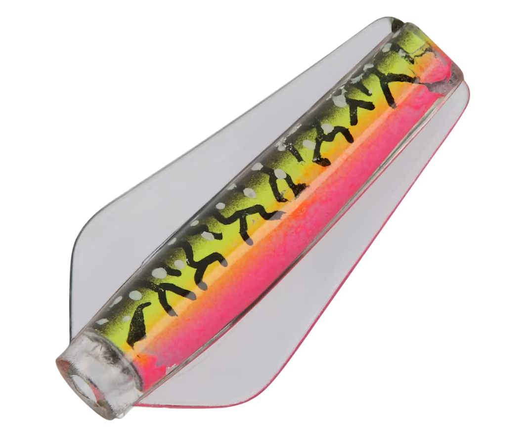 For 40 years strong, the original Tasmanian Devil Lure has proven effective on trout as well as steelhead, walleye, pike, bass, and salmon. This unique Australian hydrofoil lure features a weighted torpedo-shaped core with clear plastic wings on either side, for exceptional action and vibration as it charges through the water. Whether cast, trolled, or jigged, the Tasmanian Devil gets results when other lures can't. Tough through-wire construction.